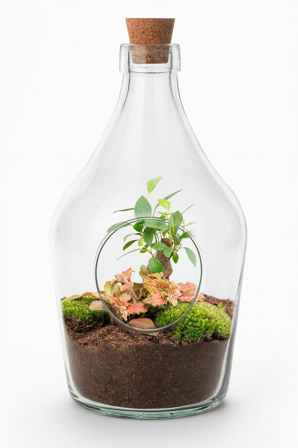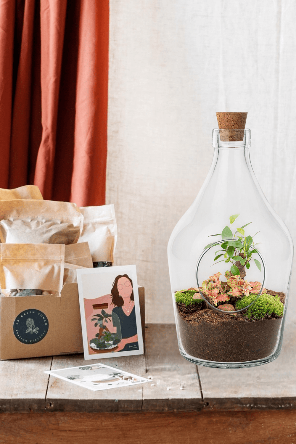 Offrez (ou offrez-vous) une expérience créative unique à la maison avec le kit Joyt : un terrarium ouvert DIY, simple à réaliser et accessible même sans la main verte. Créez votre propre petit jardin décoratif, apaisant et plein de charme, dans une élégante bouteille en verre de 30 cm de hauteur pour 16 cm de diamètre.